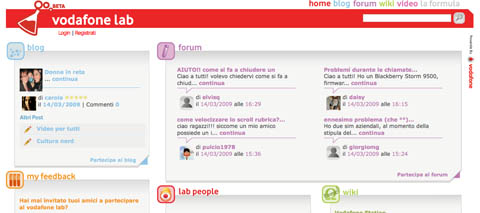 Vodafone lab ha raggiunto cifre da record e ora è pronto a rinnovarsi. Il forum-laboratorio ufficiale di Vodafone Italia ha saputo, in questi primi 8 mesi di attività, coinvolgere sapientemente più di 23000 utenti mentre la redazione del lab ha postato 324 post nel blog , di cui la maggior parte video, che hanno totalizzato più di 1.500 commenti degli utenti. Nel forum sono state aperte circa 4.600 discussioni dai labbers per un totale di oltre 36.000 messaggi, mentre nel wiki sono state create oltre 500 voci ad hoc. Numeri importanti che sottolineano l’interesse di noi utenti verso la piattaforma di Vodafone. Sicuramente un modo per vedere il gestore telefonico “quasi come un amico” (e non un vampiro succhiasoldi) e un’opportunità per Vodafone di capire le reali esigenze della sua utenza.