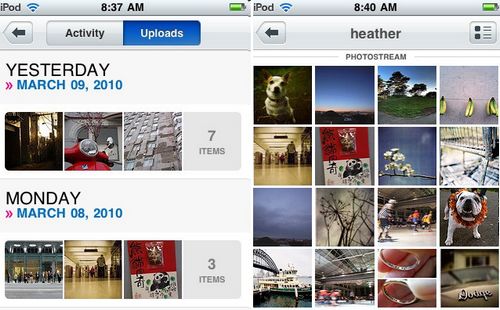 L’applicazione lavora in sinergia con la fotocamera integrata nei dispositivi Apple e permette una condivisione diretta delle immagini catturate che possono essere pubblicate sul proprio account Flickr in “set” o “album”. E’ possibile integrare le immagini con tag descrittivi e con indicazioni sul luogo dello scatto attraverso le funzioni di geolocalizzazione. Una apposita sezione dell’applicazione permette di seguire le attività della propria rete di contatti e dei gruppi a cui si è iscritti. E’ anche possibile aggiungere commenti alle proprie foto o a quelle degli altri utenti ed è possibile contrassegnare le immagini preferite per poterle ritrovare più semplicemente.