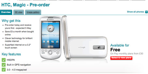 Un ottimo risveglio è stato quello di oggi per tutti gli inglesi interessati al nuovo Vodafone HTC Magic: l’operatore inglese da oggi ha reso possibile il pre-ordine del secondo telefono cellulare di HTC con sistema operativo Android. Questo nuovo dispositivo, il cui lancio è previsto durante l’anno in quasi tutto il mondo, mira a diventare il vero punto di riferimento nel mercato della telefonia mobile per HTC e la rivincita per Android, il sistema operativo di Google che, pur essendo apprezzato dal grande pubblico, non ha generato le entrate previste e sperate. E in Italia?