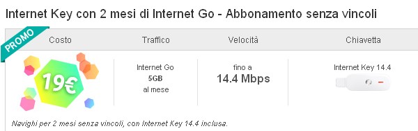 Vodafone Internet Key 14.4 e 2 mesi di Internet Go a 19 euro