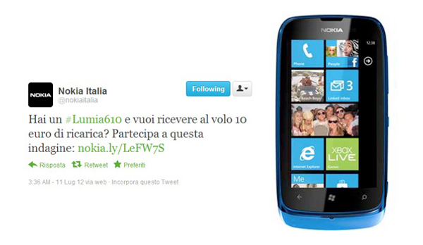 Ieri si è tenuta la presentazione alla stampa dei due nuovi nati di casa NOKIA: il LUMIA 610 ed il LUMIA 900. I due telefoni, entrambi “equipaggiati” con Windows Phone, vanno a coprire rispettivamente le fasce di prezzo medio-bassa e quella alta. Il LUMIA 610, già nei negozi dalla fine della scorsa settimana, è venduto ad un prezzo di € 199, mentre il fratello maggiore, LUMIA 900, sarà disponibile al pubblico nel corso della prossima settimana ad un prezzo di € 599.