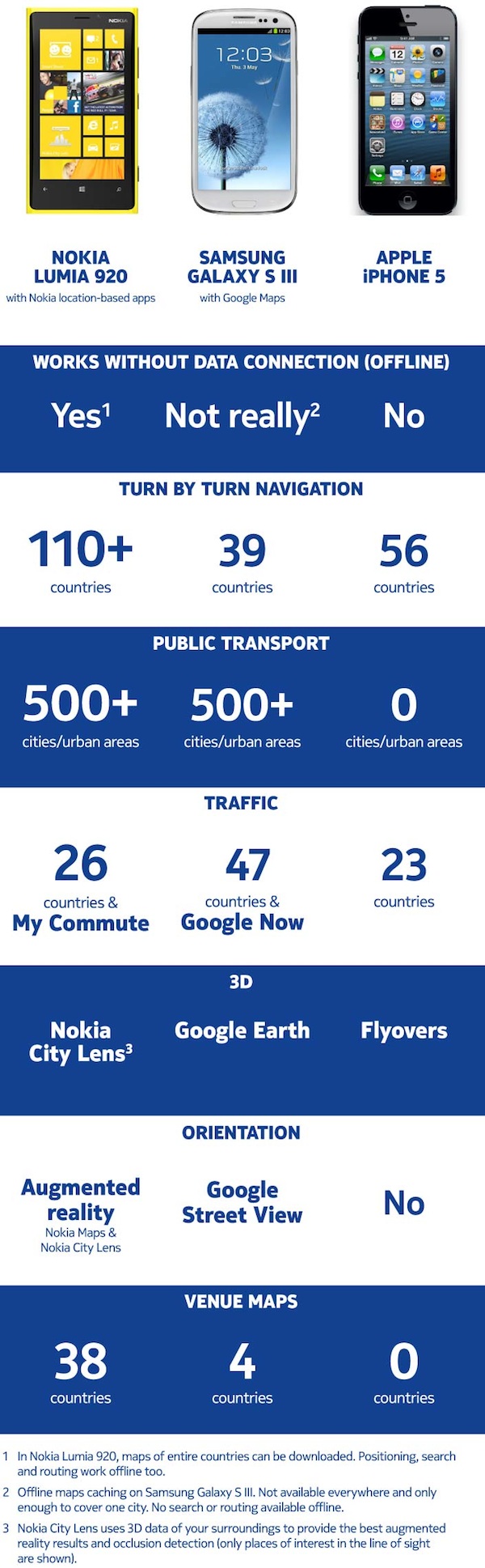 Benchmark servizi di mappe mobile: Nokia vs Google Maps ed Apple