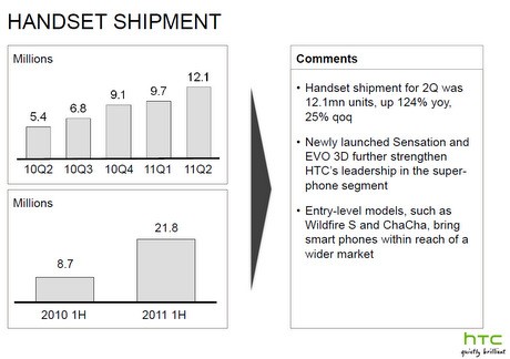 HTC ha commentato i risultati finanziari relativi alle vendite degli smartphone nel secondo trimestre del 2011. La società taiwanese è molto soddisfatta dei risultati economici ottenuti nel Q 2 2011 avendo realizzato un fatturato di 4.31 miliardi di dollari ed oltre 12 milioni di smartphone venduti (12.1, per la precisione).