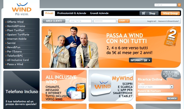 - Wind 12: chiamate a 12 centesimi/minuto verso tutti i numeri nazionali; 15 centesimi/SMS verso tutti i numeri nazionali; scatto alla risposta di 18 centesimi.