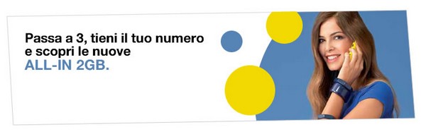3 Italia ha rinnovato la gamma delle offerte ricaricabili “tutto incluso” introducendo i nuovi piani ALL-IN 2GB. Come suggerisce la denominazione scelta queste nuove offerte introducono ben 2 GB di traffico internet mensile e sono proposte con sconti fino al 50% per gli utenti che passano a 3 da altro operatore.