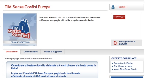 Come già espresso ieri, tempo di vacanze è spesso sinonimo di tempo di viaggi all’estero: nonostante la crisi economica mondiale, i media puntano il dito sull’incremento dei viaggi all’estero. Siccome in queste vacanze “c’è di mezzo il Capodanno” e qualche telefonata bisogna pur farla ai propri cari, ecco che noi di IoChiamo anche oggi vogliamo proporvi un’offerta per telefonare dall’estero risparmiando. Dopo aver parlo ieri della Vodafone Free Roaming, oggi è il turno del maggiore operatore italiano di telefonia mobile: vale a dire TIM. TIM per la “zona Euro” presenta l’offerta TIM Senza Confini Europa che quando si soggiorna all’estero permette di ricevere le chiamate a 0 cent di Euro al minuto come in Italia e in più, “nei Paesi dell’Unione Europea paghi solo le chiamate effettuate al costo di 58,8 Cent. di Euro al minuto“.