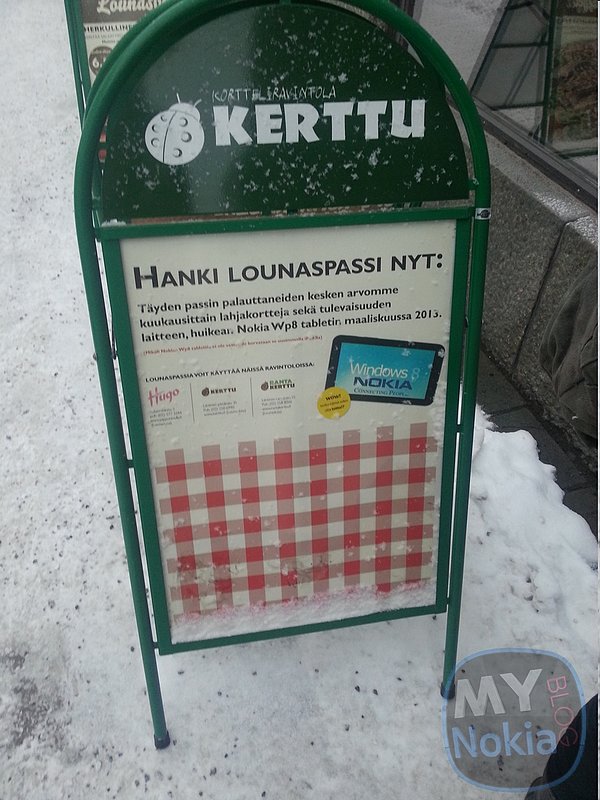 L’ipotesi che anche Nokia voglia riproporsi nel sempre più ricco mercato dei tablet circola da diverso tempo. Ora però questa ipotesi ha trovato una curioso rilancio in un cartello pubblicitario di un ristorante finlandese che sembra proprio mettere in palio un Nokia Tablet con sistema operativo Windows.
