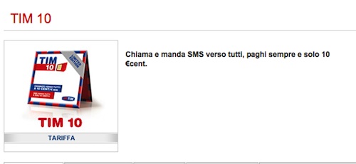 Mettiamo che con il Natale vicino siamo tutti più buoni, aggiungiamo anche che TIM è l’operatore telefonico mobile che quest’anno ha perso più clienti ed ecco forse già spiegato il perché di questa nuova tariffa che mira a rilanciare le sorti del primo operatore italiano. La nuova tariffa si chiama TIM 10 ed offre la possibilità di parlare a 10 centesimi di euro al minuto con tutti i numeri TIM, i numeri di Rete Fissa e altri operatori mobili con uno scatto alla risposta pari a 16 centesimi di euro.