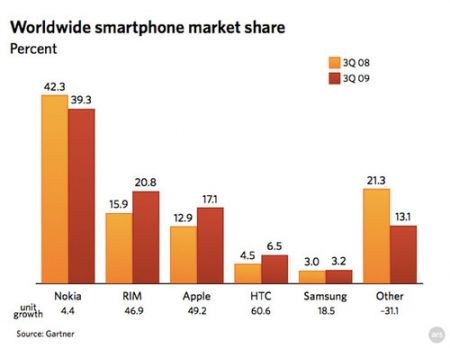 A vincere la guerra dei numeri, secondo le ultime analisi del mercati svolte dalla NPD, lo smartphone più venduto negli ultimi tre mesi e soprattutto quello che sarà più venduto (secondo le previsioni) nel periodo natalizio negli USA è il RIM BlackBerry Curve 8900.