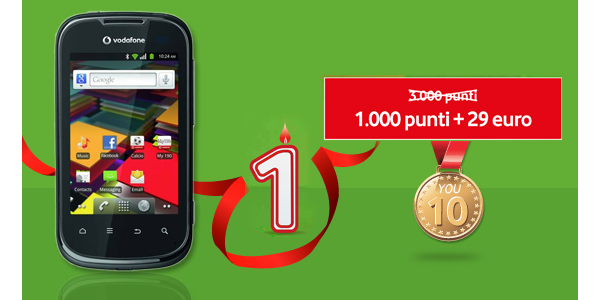 Vodafone festeggia in questi giorni il primo anniversario del programma Vodafone You che premia i clienti più fedeli. Tra le iniziative che l’operatore ha messo in campo abbiamo già segnalato il rinnovo del catalogo premi mentre oggi vogliamo parlarvi della speciale promozione sullo smartphone Vodafone Smart 2.