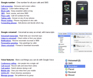 Google Voice permette l’invio di SMS, MMS, chiamate in conferenza, conoscere l’ID ed indentificare il chiamante etc. L’utilizzo è molto semplice, basta ottenere un numero Google Number (per ora riservato agli utenti statunitensi abbonati a Grand Central) ed il gioco è fatto. Il nuovo servizio parte a due anni dall’acquisto da parte di Google della Grand Central Communications. La compagnia, infatti, aveva un servizio simile migliorato da Google.