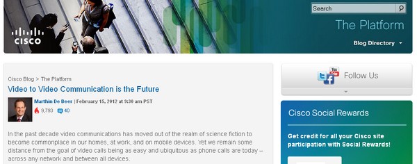 De Beer spiega che la visione di Cisco è quella di un mercato delle comunicazioni video basato su standard comuni in cui ogni operatore possa comunicare con gli altri in un sistema concettualmente simile a quello della posta elettronica.